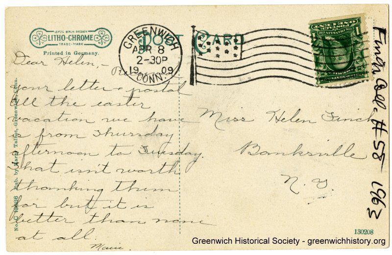 Note is addressed to Miss Helen Finch, Banksville, N.Y.