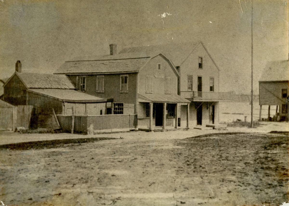 A view of the front of buildings on Strickland Road, across from the Bush-Holley House.Collection