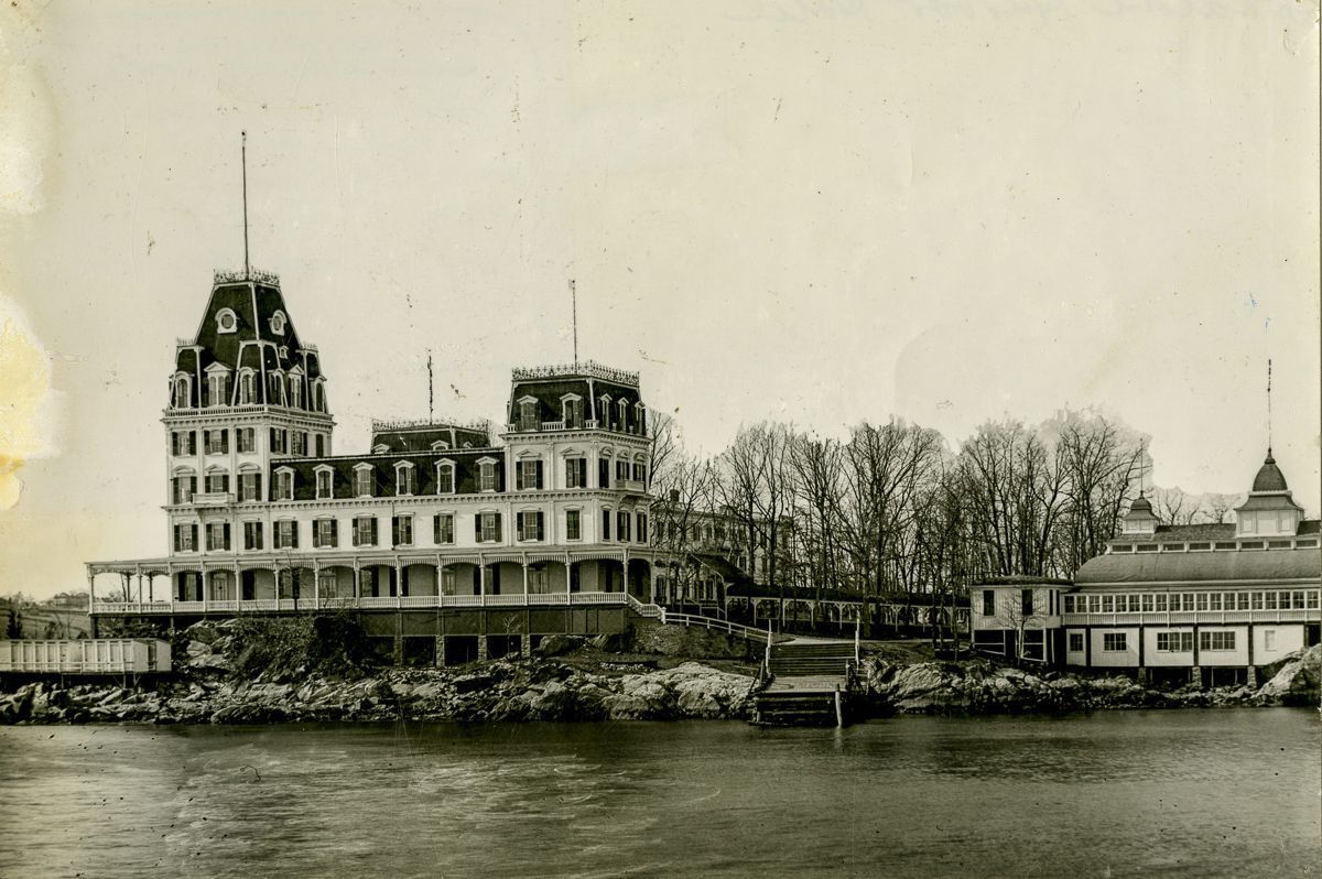 A view of the Indian Harbor Hotel, from Mead Point, looking west towards Greenwich Harbor and Belle Haven.Collection