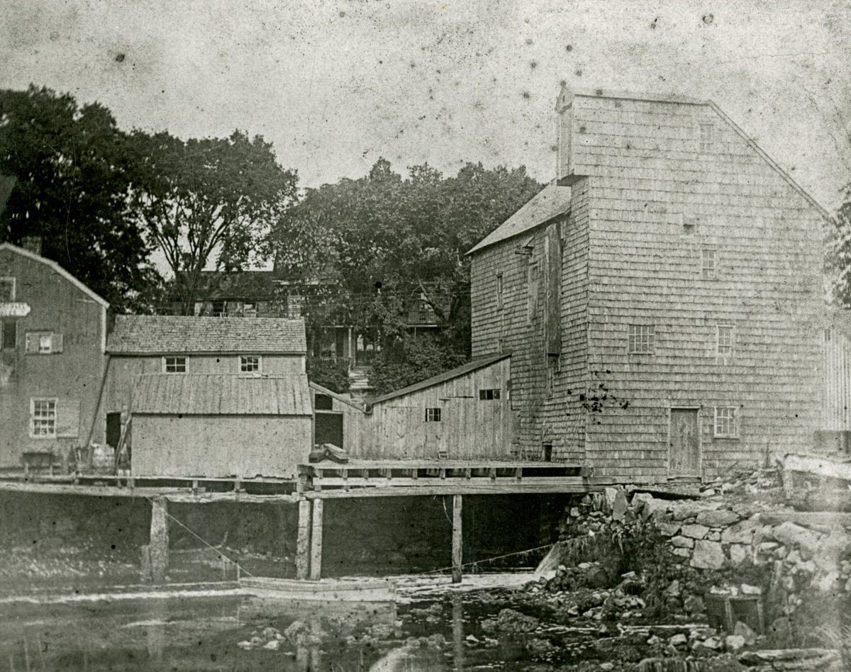 A view from Palmer Point of the Bush Gristmill and the Bush-Holley House in the background.Collection
