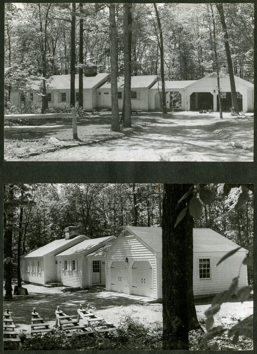 Pages from an album with images from brochures, personal photographs, and newspaper clippings to do with the Old Greenwich Inn, its demolition in 1956, and the later construction of houses on the site.Collection