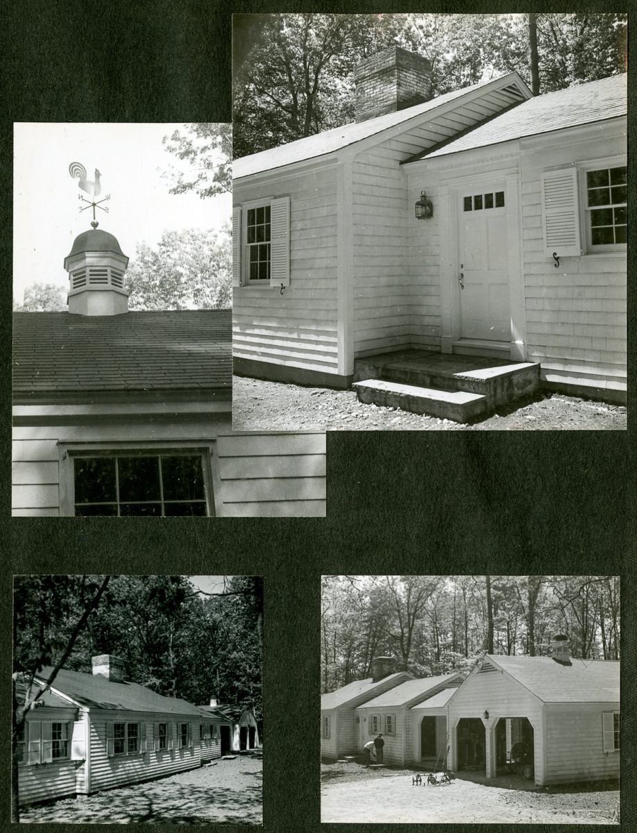 Pages from an album with images from brochures, personal photographs, and newspaper clippings to do with the Old Greenwich Inn, its demolition in 1956, and the later construction of houses on the site.Collection