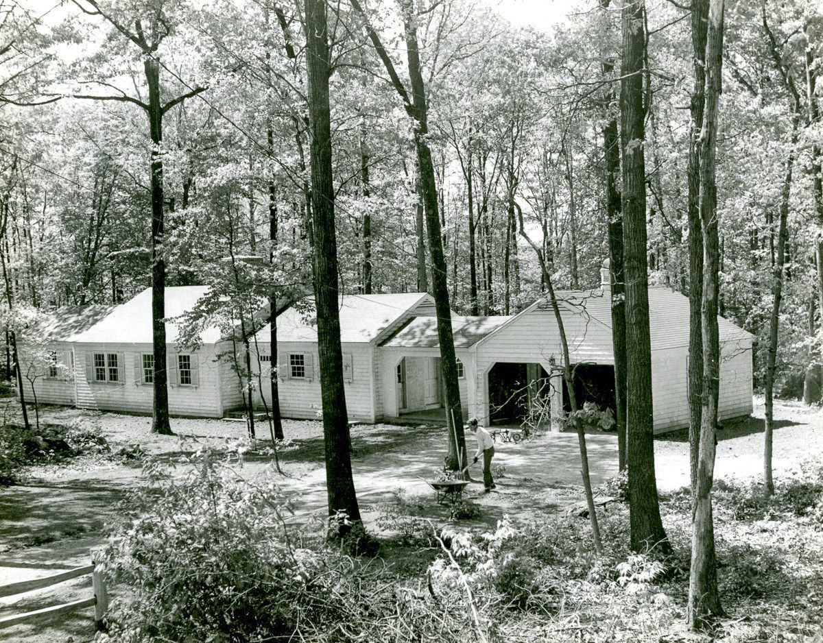 Pages from an album with images from brochures, personal photographs, and newspaper clippings to do with the Old Greenwich Inn, its demolition in 1956, and the later construction of houses on the site.Collection
