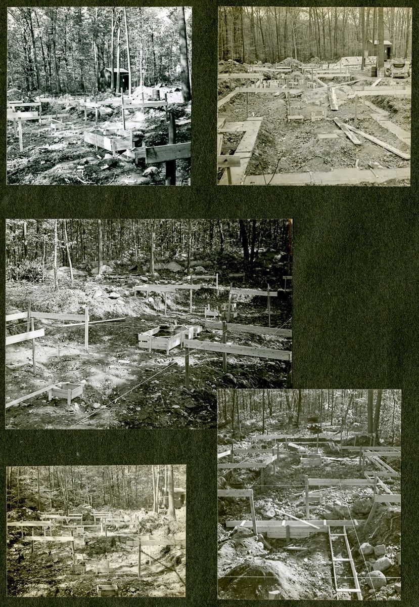 Pages from an album with images from brochures, personal photographs, and newspaper clippings to do with the Old Greenwich Inn, its demolition in 1956, and the later construction of houses on the site.Collection