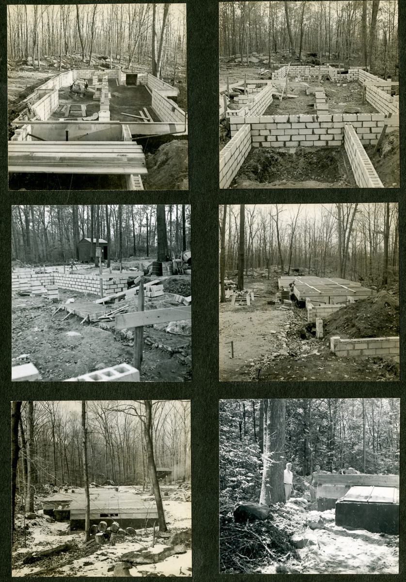 Pages from an album with images from brochures, personal photographs, and newspaper clippings to do with the Old Greenwich Inn, its demolition in 1956, and the later construction of houses on the site.Collection