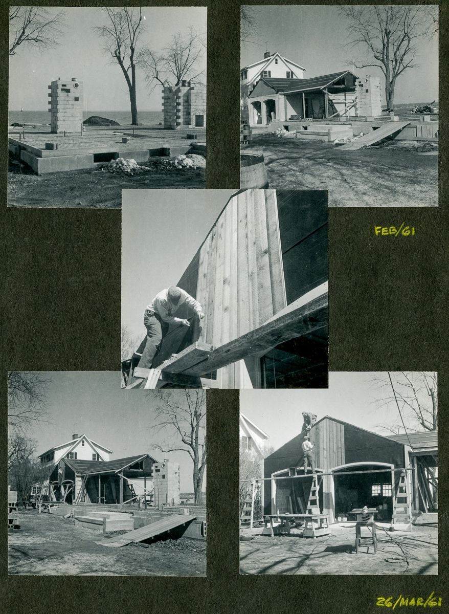 Pages from an album with images from brochures, personal photographs, and newspaper clippings to do with the Old Greenwich Inn, its demolition in 1956, and the later construction of houses on the site.Collection