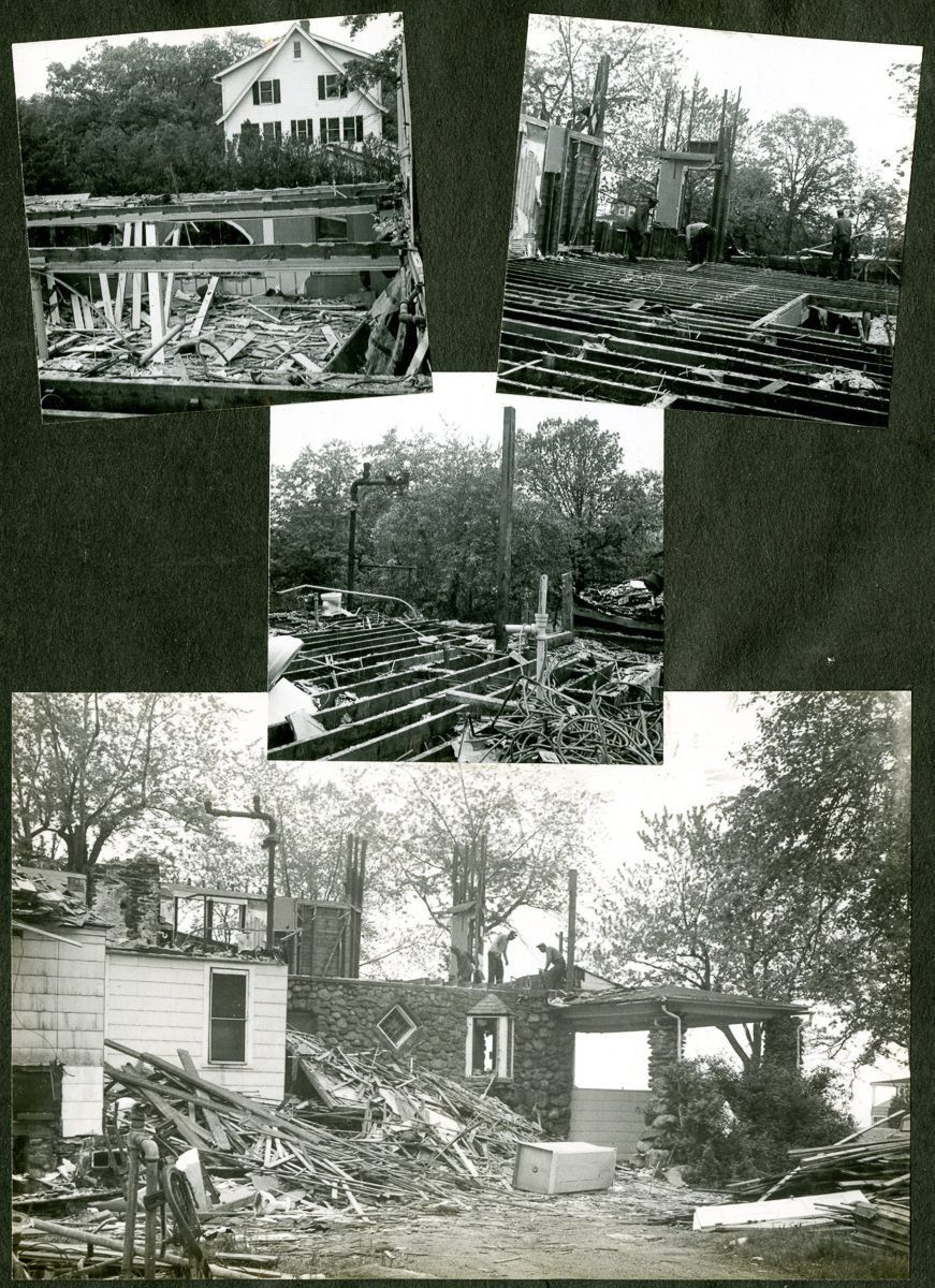 Pages from an album with images from brochures, personal photographs, and newspaper clippings to do with the Old Greenwich Inn, its demolition in 1956, and the later construction of houses on the site.Collection
