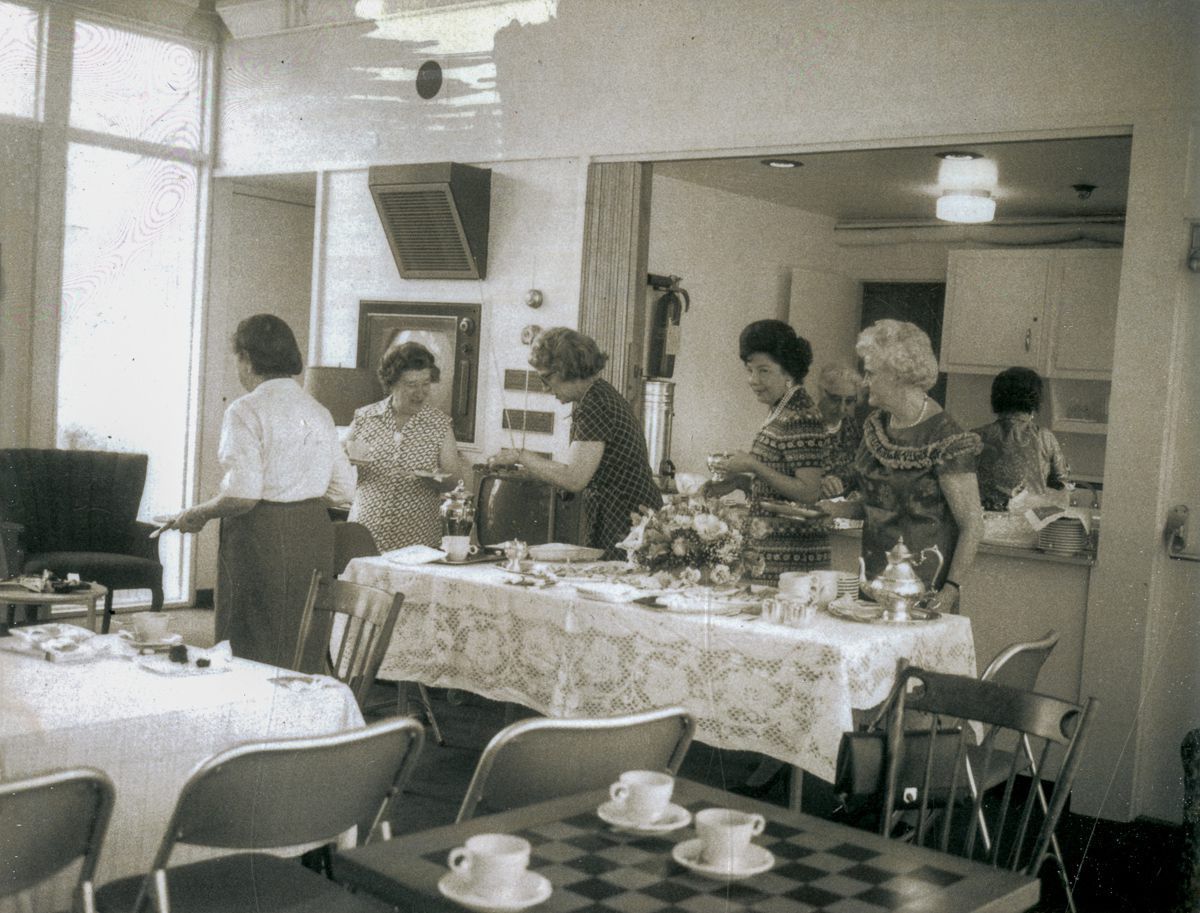 Members of the Soroptimist Club hostessing a tea in Quarry Knoll's community room as part of the club's observance of Senior Citizen's month.Collection
