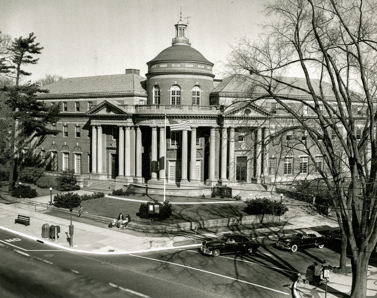 A view of the YMCA building from the roof of a building on East Putnam Avenue, facing east.
