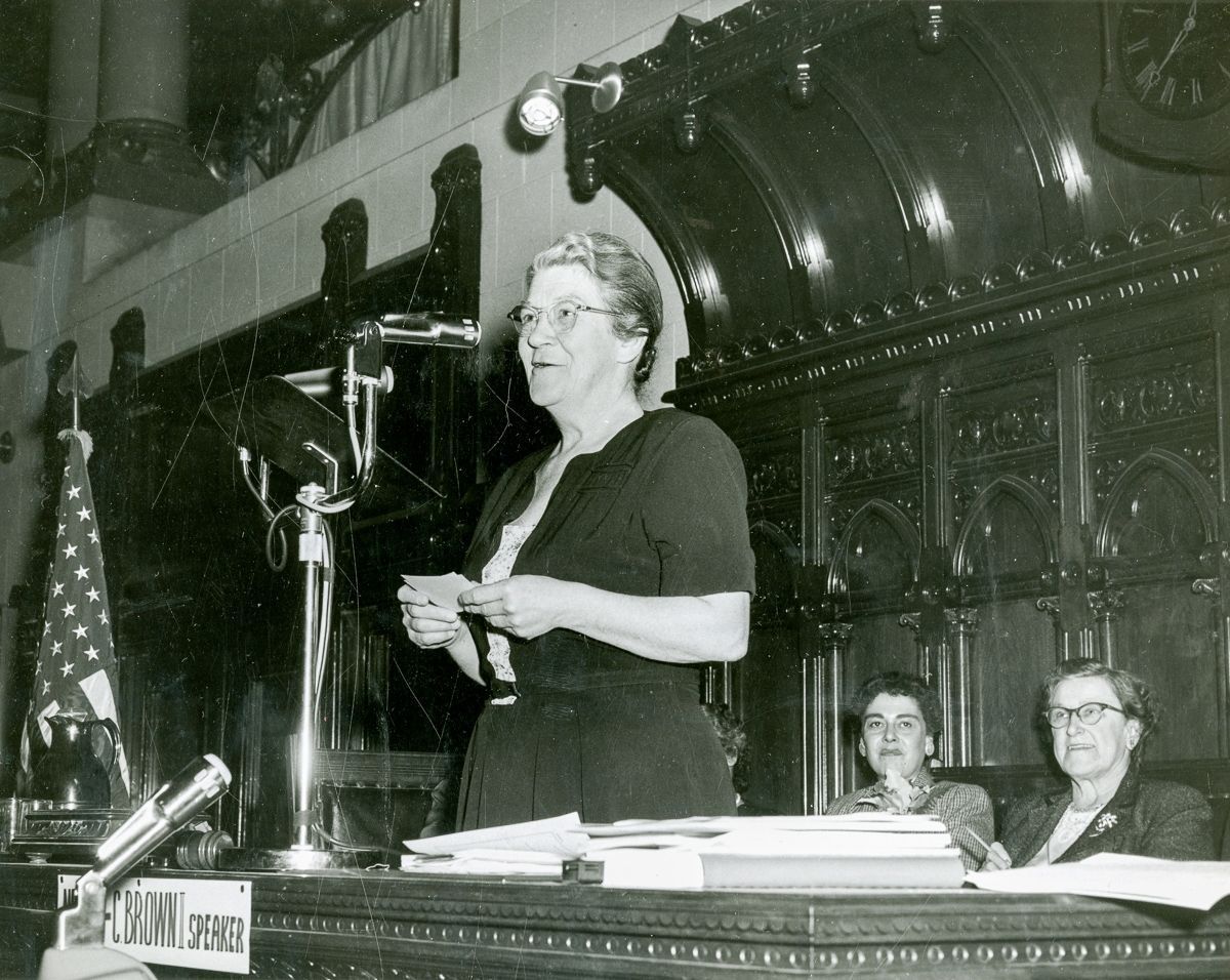 A woman giving a speech at an event held by the Connecticut Council of Republican Women.Collection