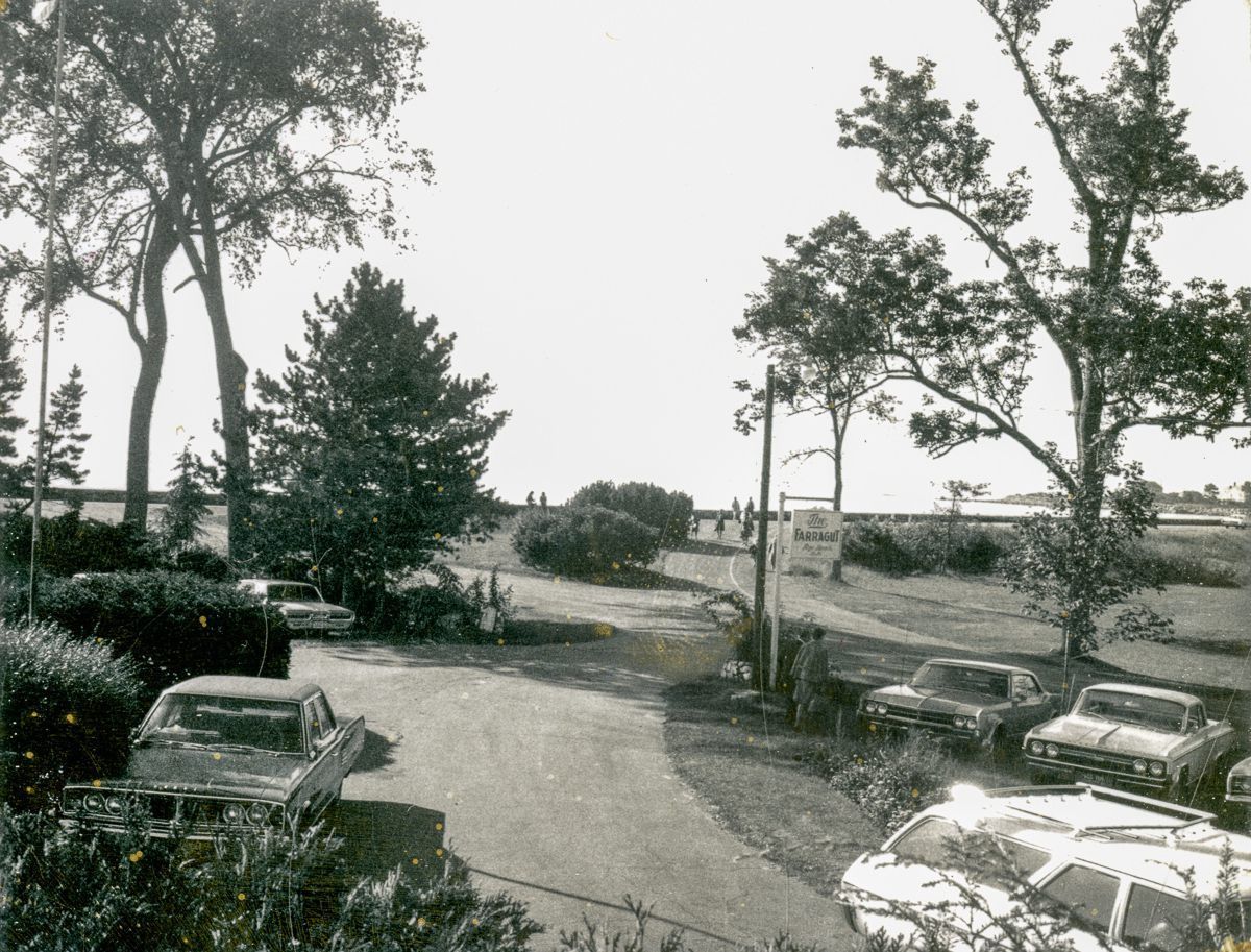 Cars in the parking lot of The Farragut Hotel in Rye, New Hampshire where the Greenwich Soroptimist Club went on a trip.Collection