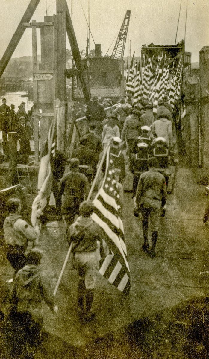 Boy Scouts from Greenwich leaving the Stamford-Oyster Bay ferry at Oyster Bay, Long Island during a 'pilgrimage' to Theodore Roosevelt's former estate at Sagamore.0Collection