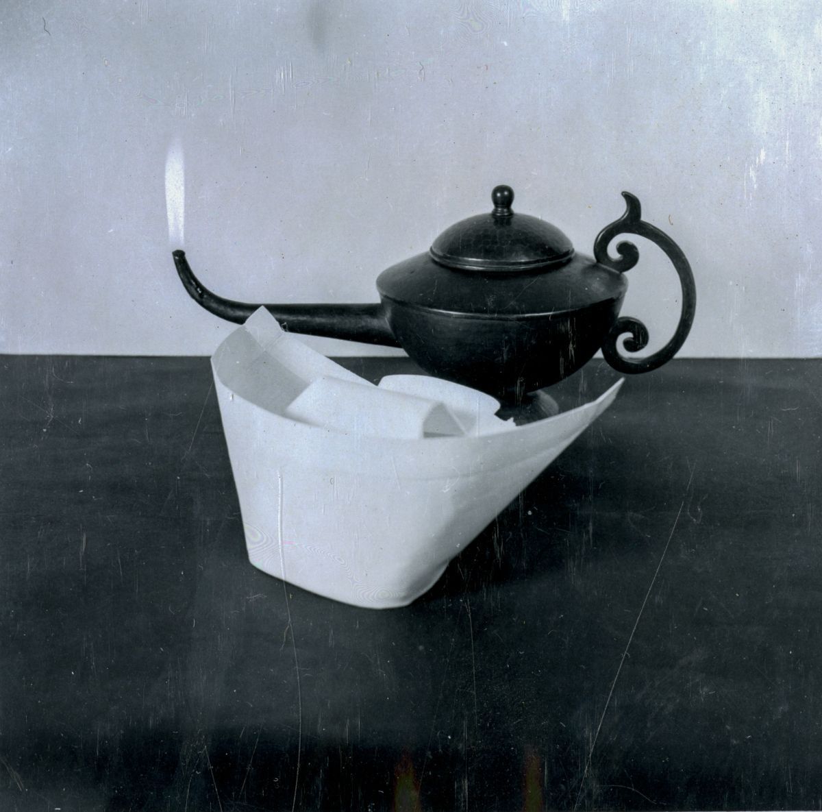A display of a nurses cap and a 'lamp of knowledge,' sometimes also referred to as a 'Florence Nightingale lamp,' an oil lamp that is used as a symbol of the nursing profession and the need for nurses' dedication and selflessness.Collection