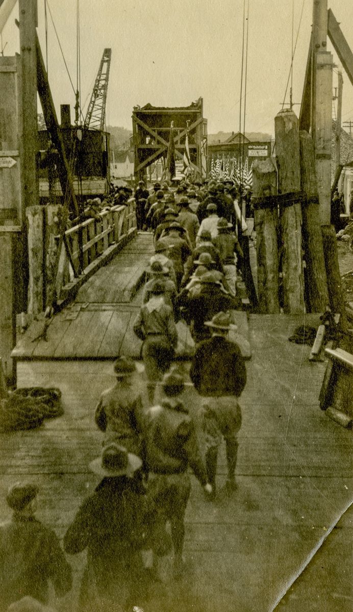 Boy Scouts from Greenwich leaving the Stamford-Oyster Bay ferry at Oyster Bay, Long Island during a 'pilgrimage' to Theodore Roosevelt's former estate at Sagamore.Collection
