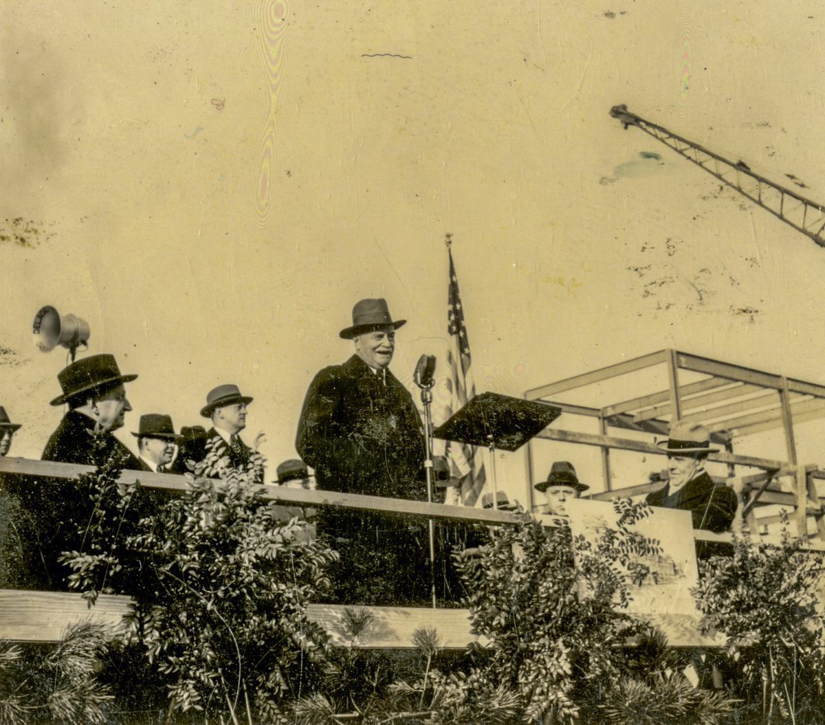Julian Curtiss giving a speech at the cornerstone ceremony for the construction of the new Boy's Club buildings on Horseneck Lane.Collection