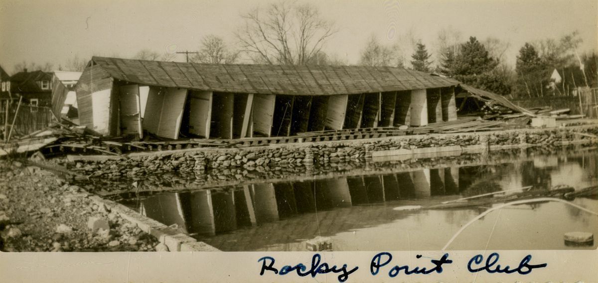 Buildings of the Rocky Point Club largely destroyed after a hurricane.