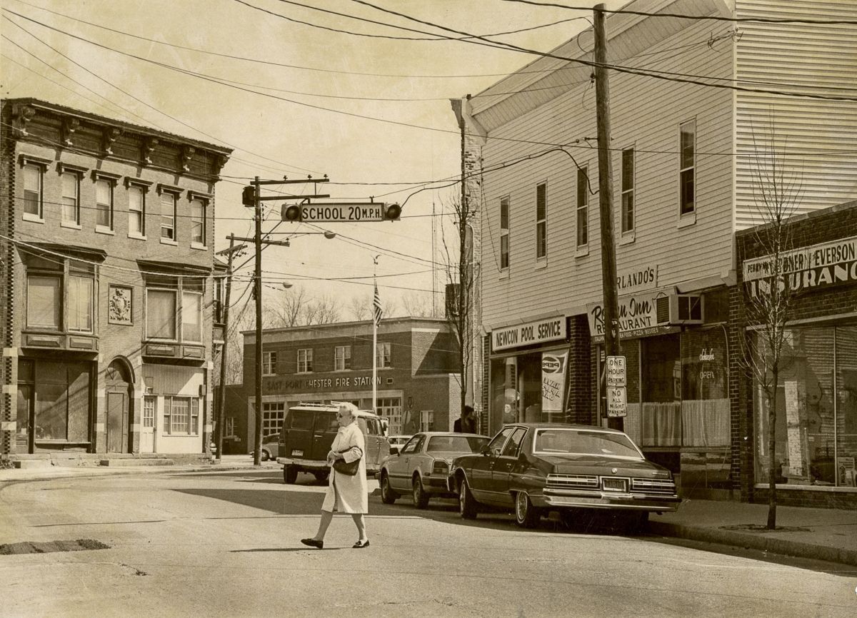 Looking south-east along Mill Street with the East Port Chester fire station in the background.Collection