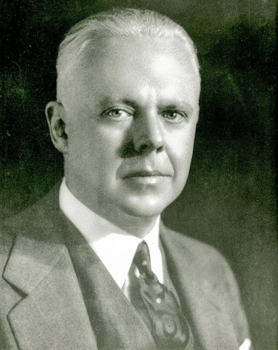 A portrait of Wilbur S. Peck, First Selectman of Greenwich from 1940 to 1952.