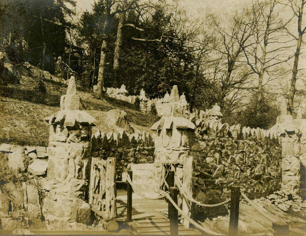 The dock of the Quick residence on Byram Shore with a stone wall lined path leading up to the house.Collection
