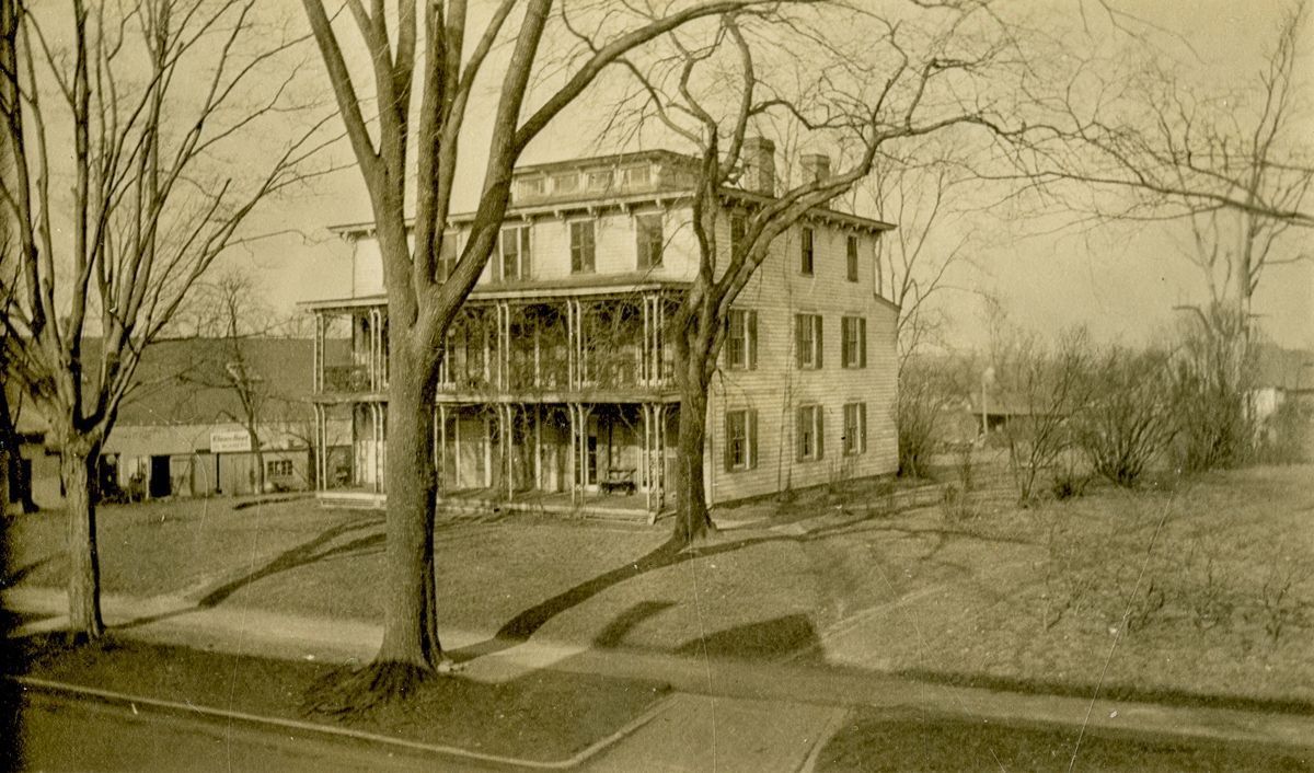 A view of Weed Tavern, an inn opened in 1790 that sat along the Post Road and was well known in Greenwich as one of the Marquis de La Lafayette's stops on his 1824 tour of the United States. In 1809 the inn also became Greenwich's second post office.Collection