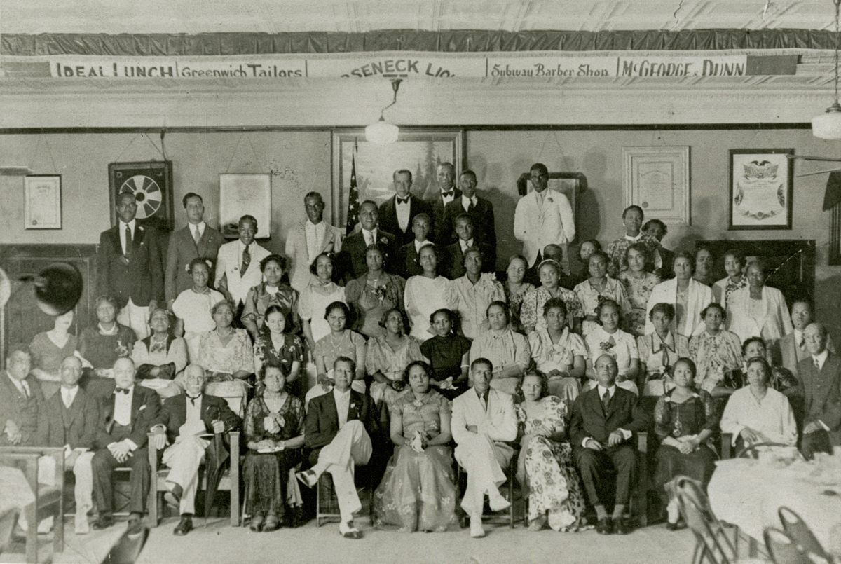 Attendees of an Elk's convention along with church members in Redman's Hall, Elm Street.