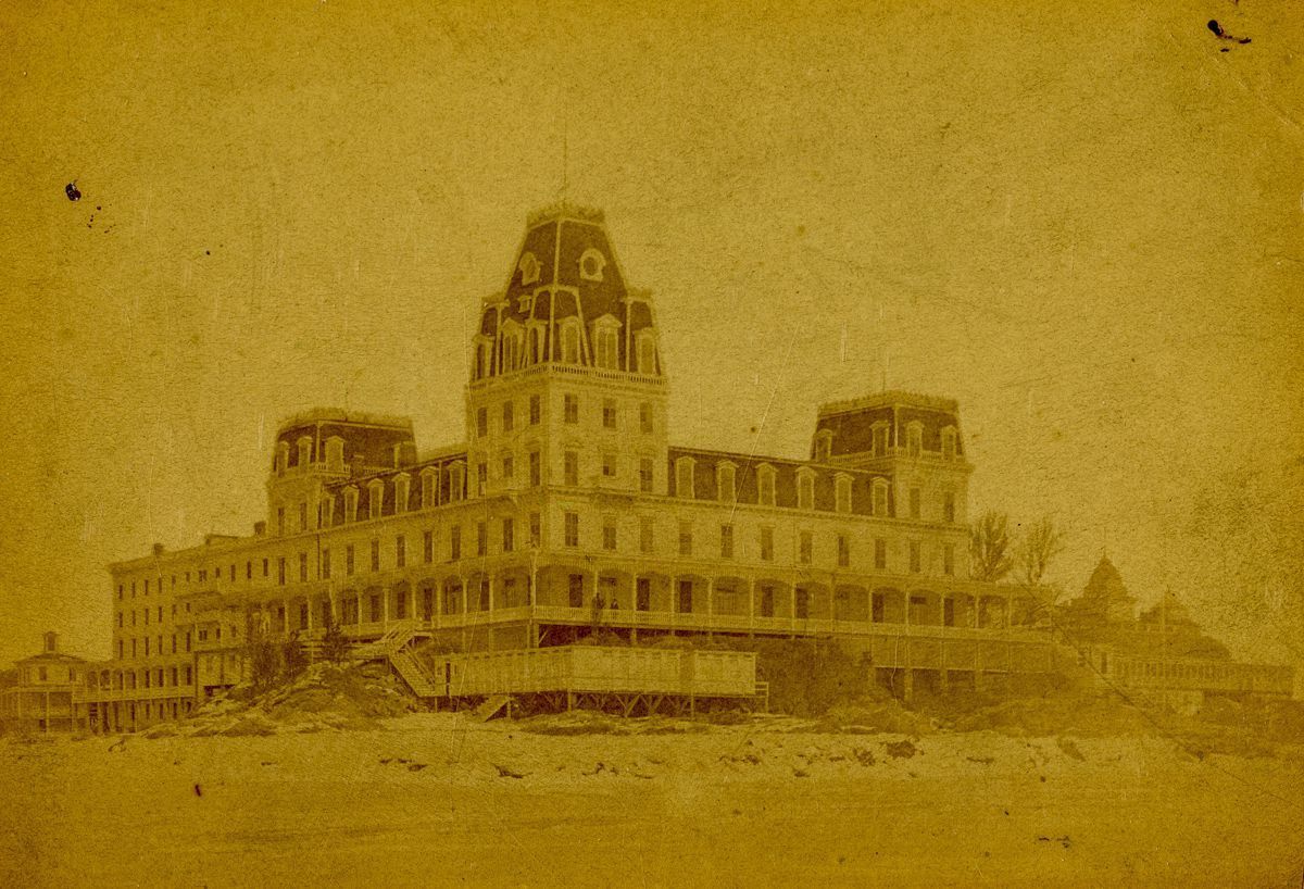 A view of the Indian Harbor Hotel, originally built by Boss Tweed and known as the Americus Club, shortly before E.C. Benedict tore down the structure to build a mansion in the April of 1895.Collection