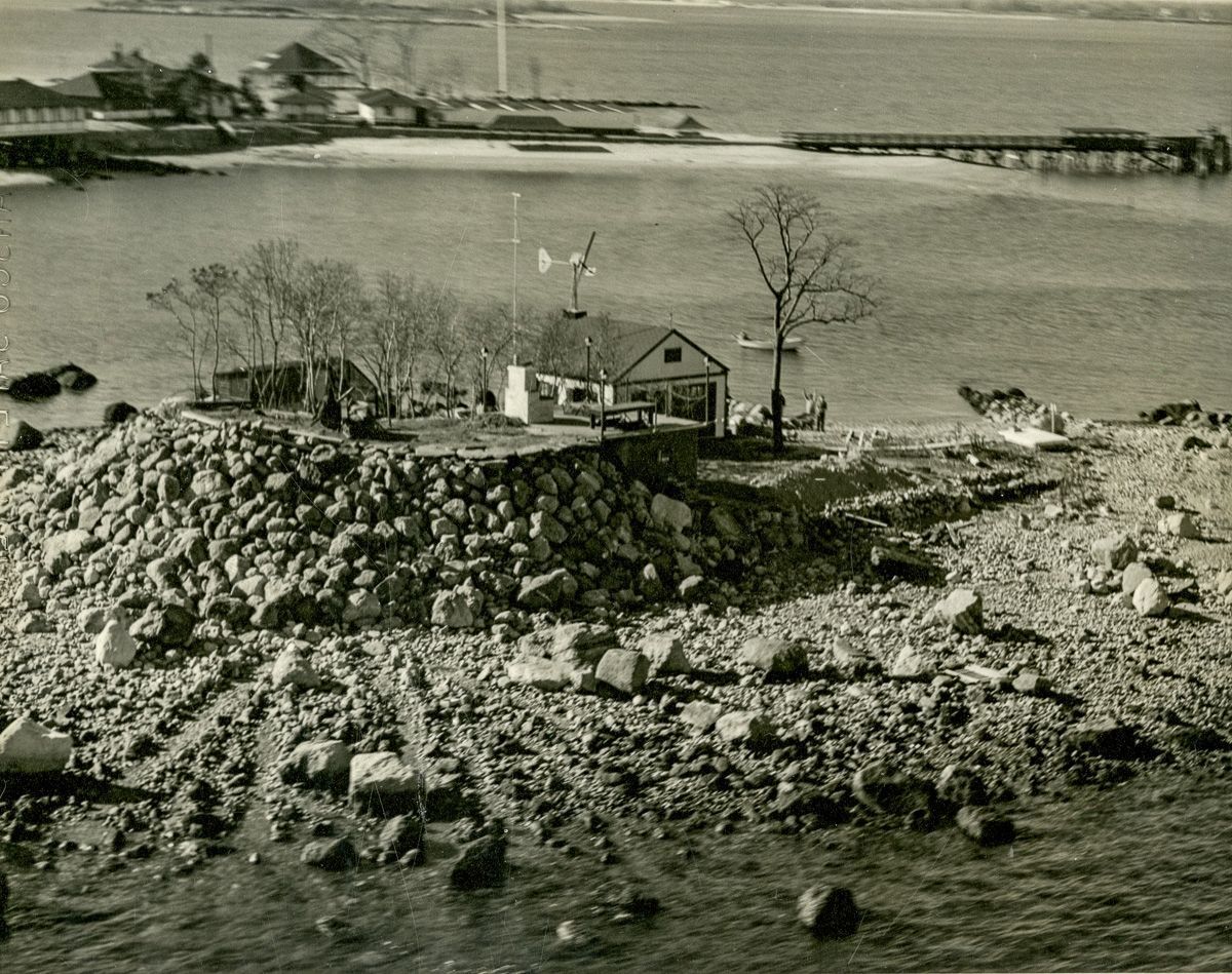 Aerial views of Wee Captain Island before and after a house was constructed on it.Collection