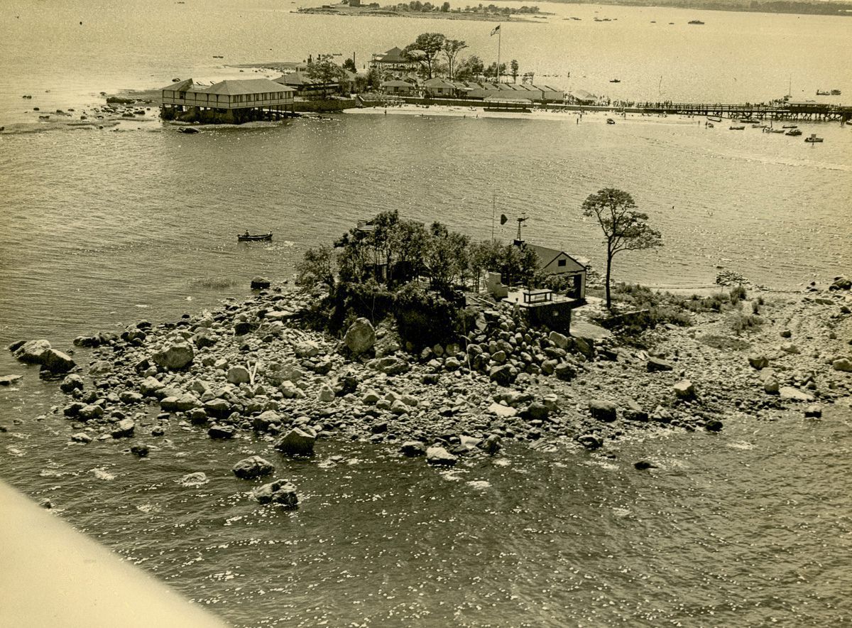 Aerial views of Wee Captain Island before and after a house was constructed on it.Collection