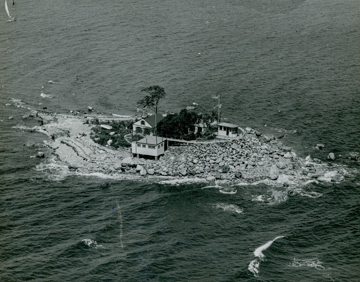 Aerial views of Wee Captain Island before and after a house was constructed on it.Collection