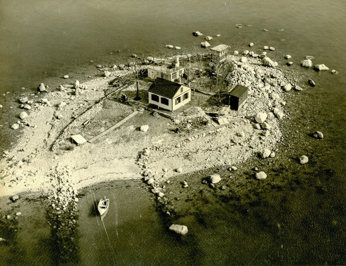 Aerial views of Wee Captain Island before and after a house was constructed on it.Collection