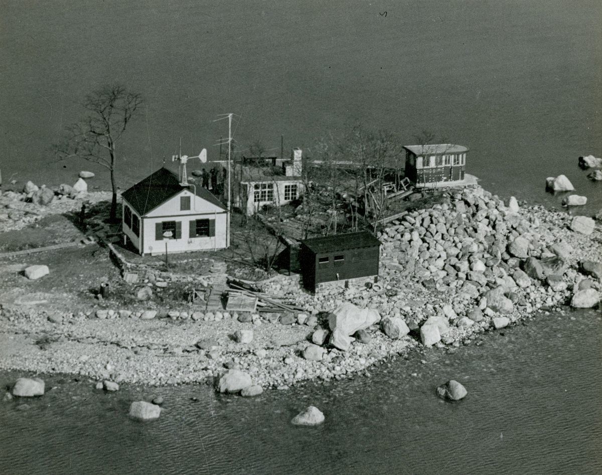 Aerial views of Wee Captain Island before and after a house was constructed on it.Collection