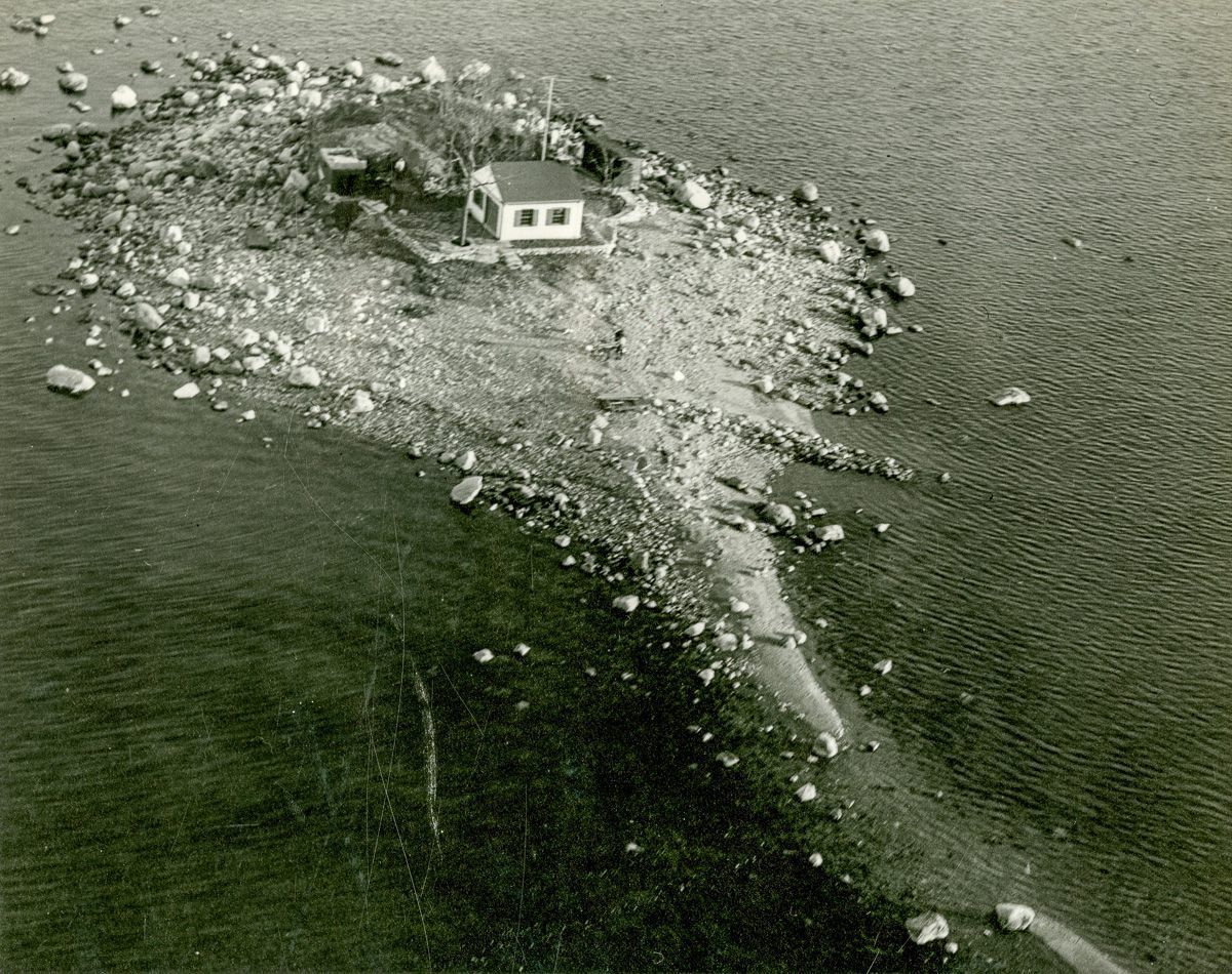 Aerial views of Wee Captain Island before and after a house was constructed on it.Collection