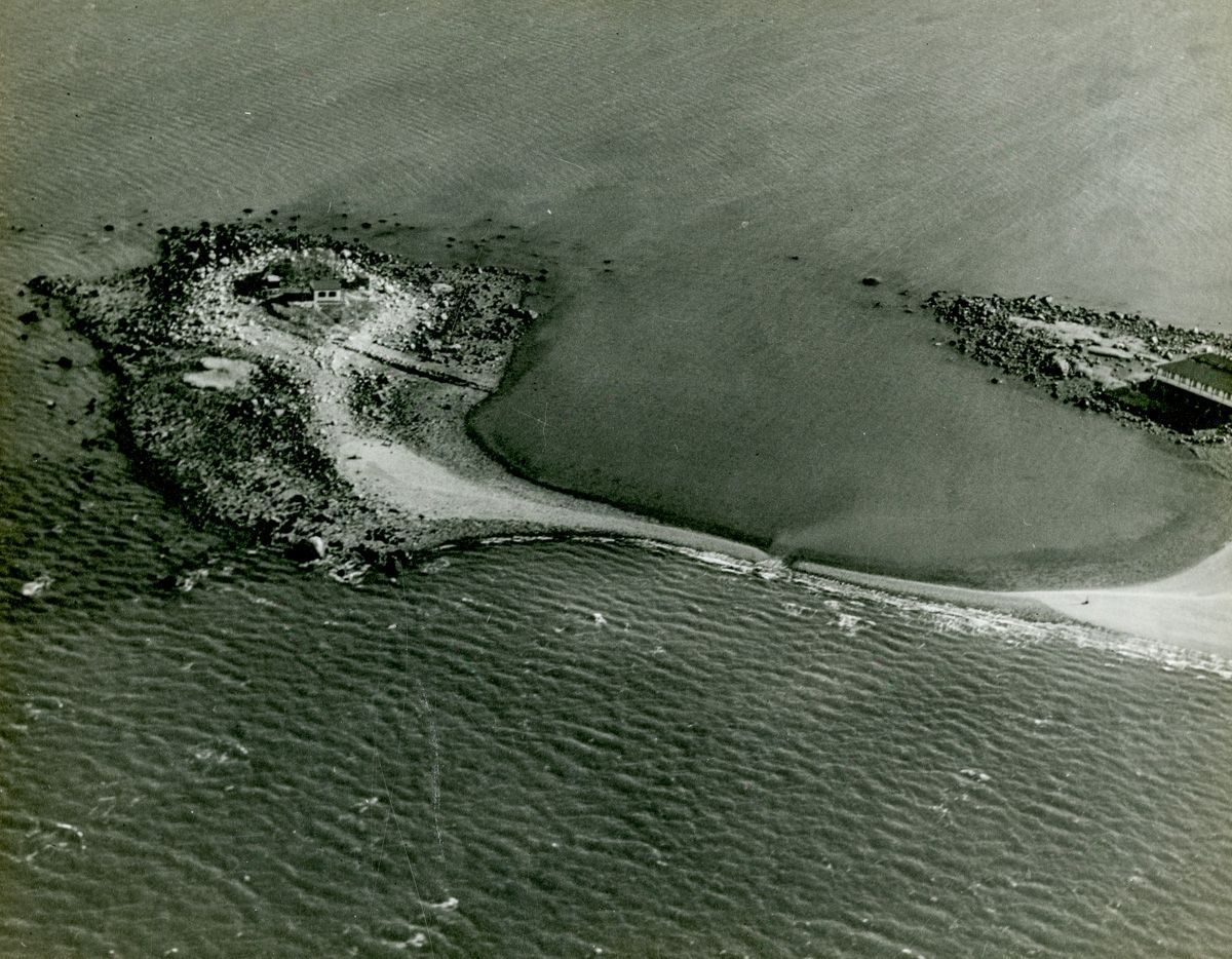 Aerial views of Wee Captain Island before and after a house was constructed on it.Collection