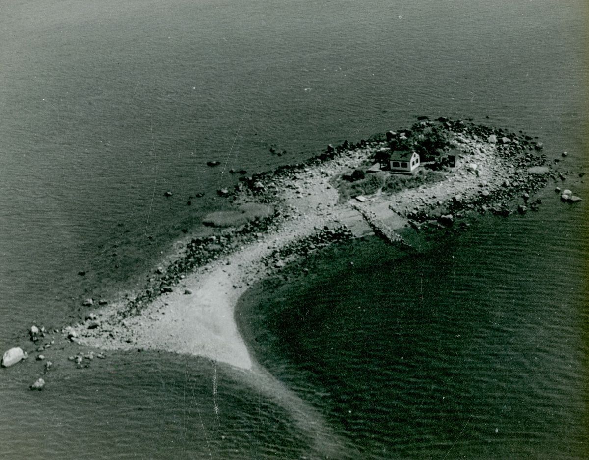 Aerial views of Wee Captain Island before and after a house was constructed on it.Collection