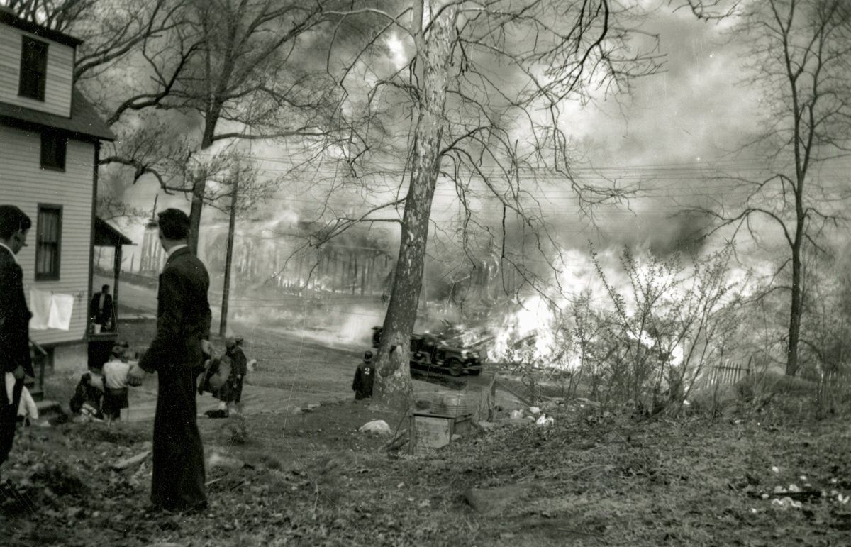 Images of a fire that destroyed the Mianus Manufacturing Company's wool factories on August 22nd, 1938.Collection