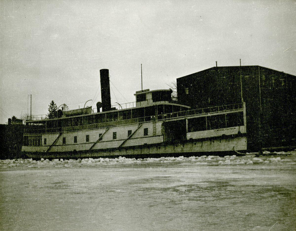 The ferry "General Putnam" in the iced-over Greenwich Harbor.
