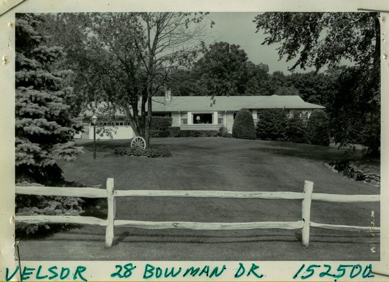 Ranch house built in the 1950's with a garage and a split-rail fence viewed from the street.