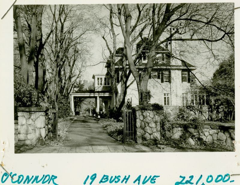 Colonial-style house built in 1893 with a partially-covered driveway viewed from the street.