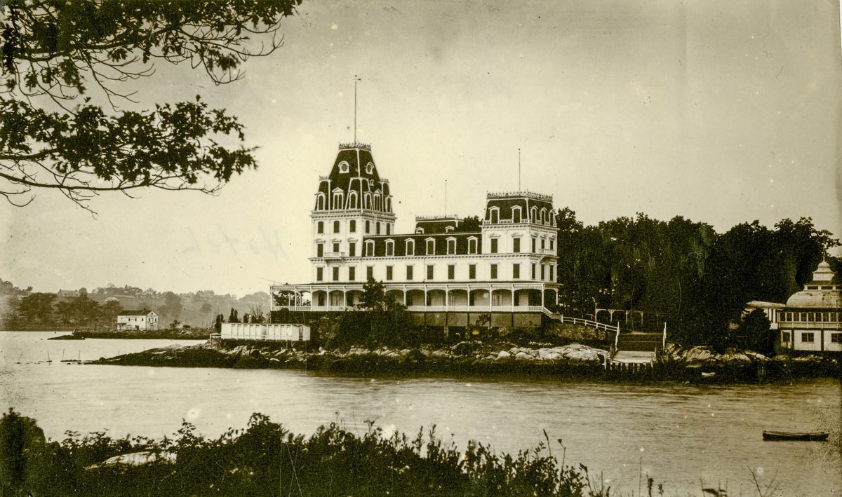 A view of the Indian Harbor Hotel, from Mead Point, looking west towards Greenwich Harbor and Belle Haven.Collection