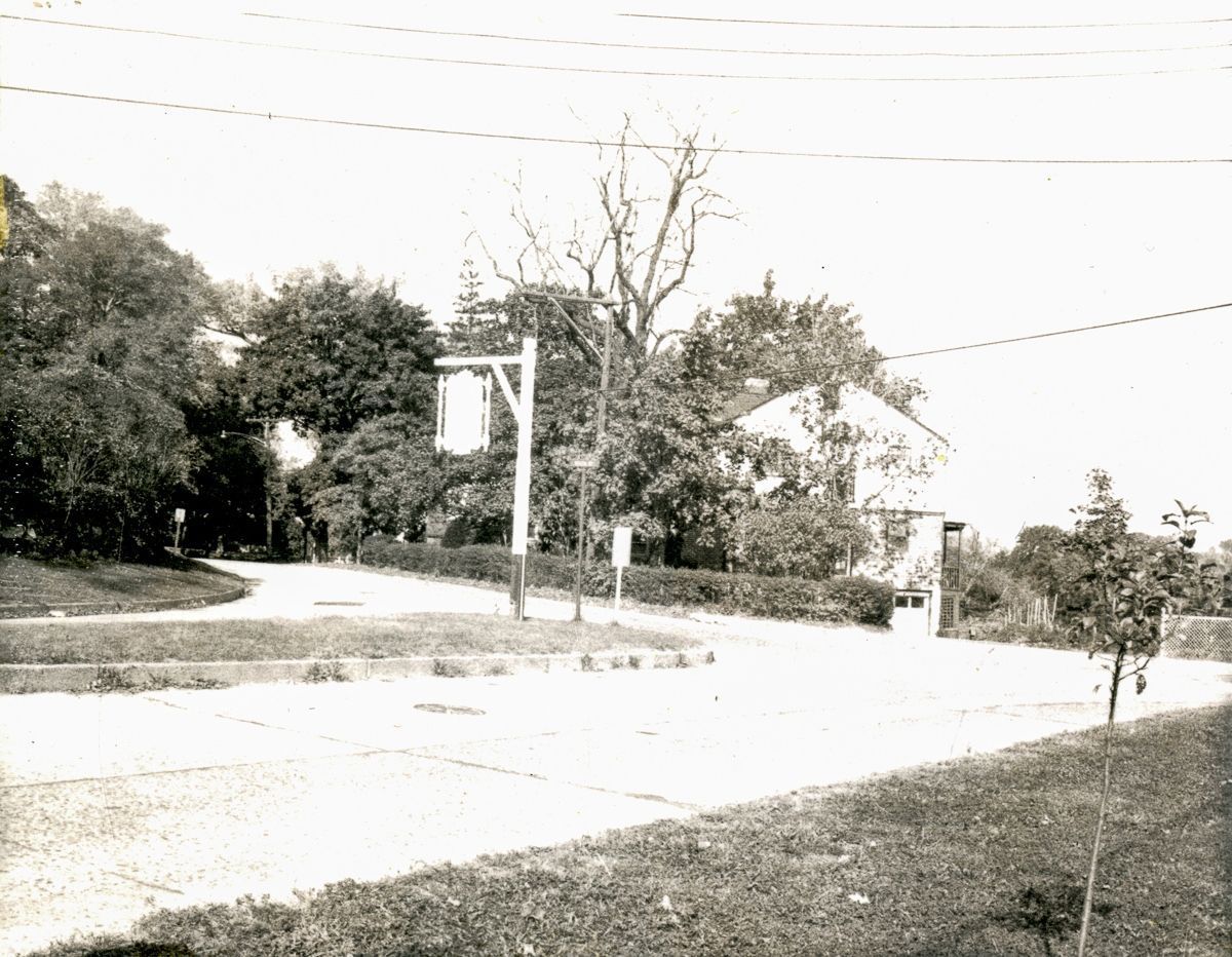 The sign for the Greenwich Historical Society at the intersection of Strickland Road and River Road.