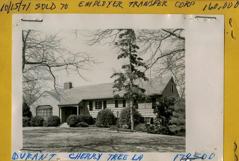 Colonial split-level built in 1956 with shingle siding viewed from its lawn.