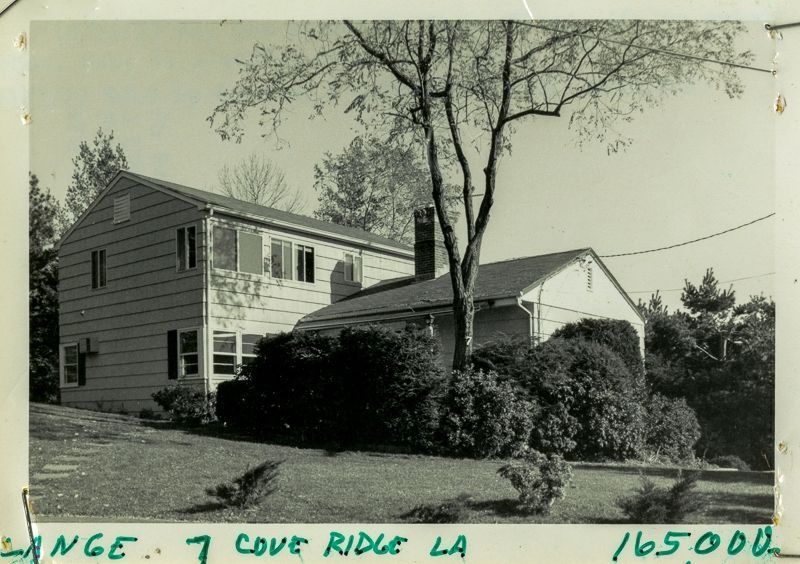 Ranch house built in 1953 with an 1977 second floor addition to one of its wings, viewed from its lawn.