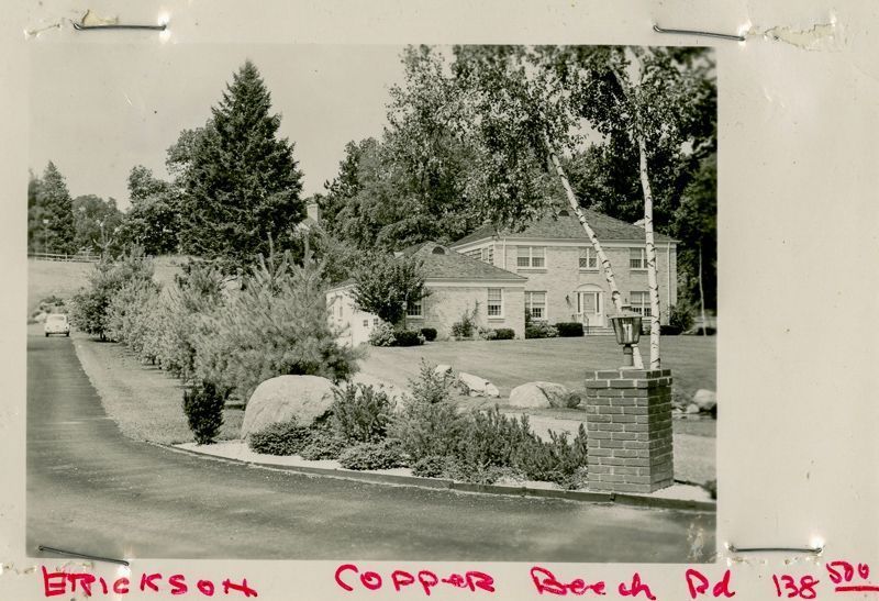 Georgian-style house built in 1964 with brick walls viewed from the street.