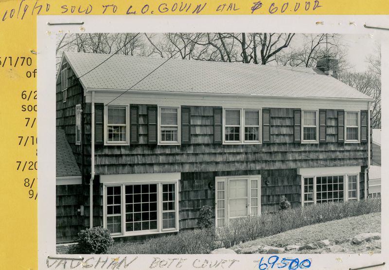 Two story shingled house built in 1959 viewed from the street.
