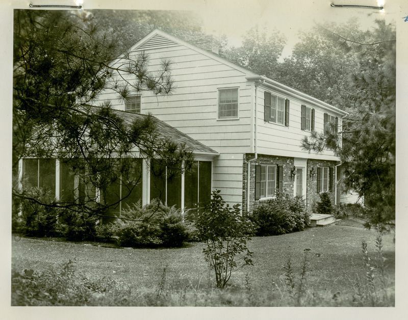 Colonial-style house built in 1960 with a screened-in porch viewed from its lawn.