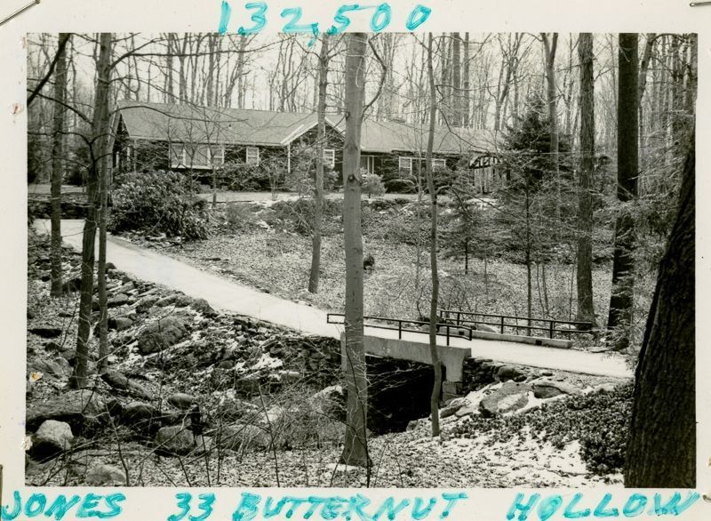 Ranch house built in 1950 with a wooded area in front of its house with a small bridge over a stream as part of its driveway.Collection