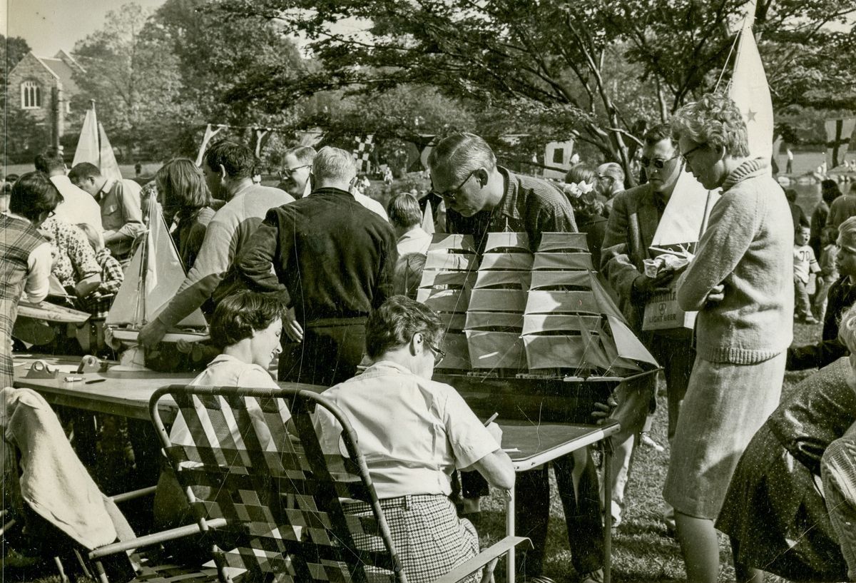 People reviewing entries in the OGRCC's model boat regatta.