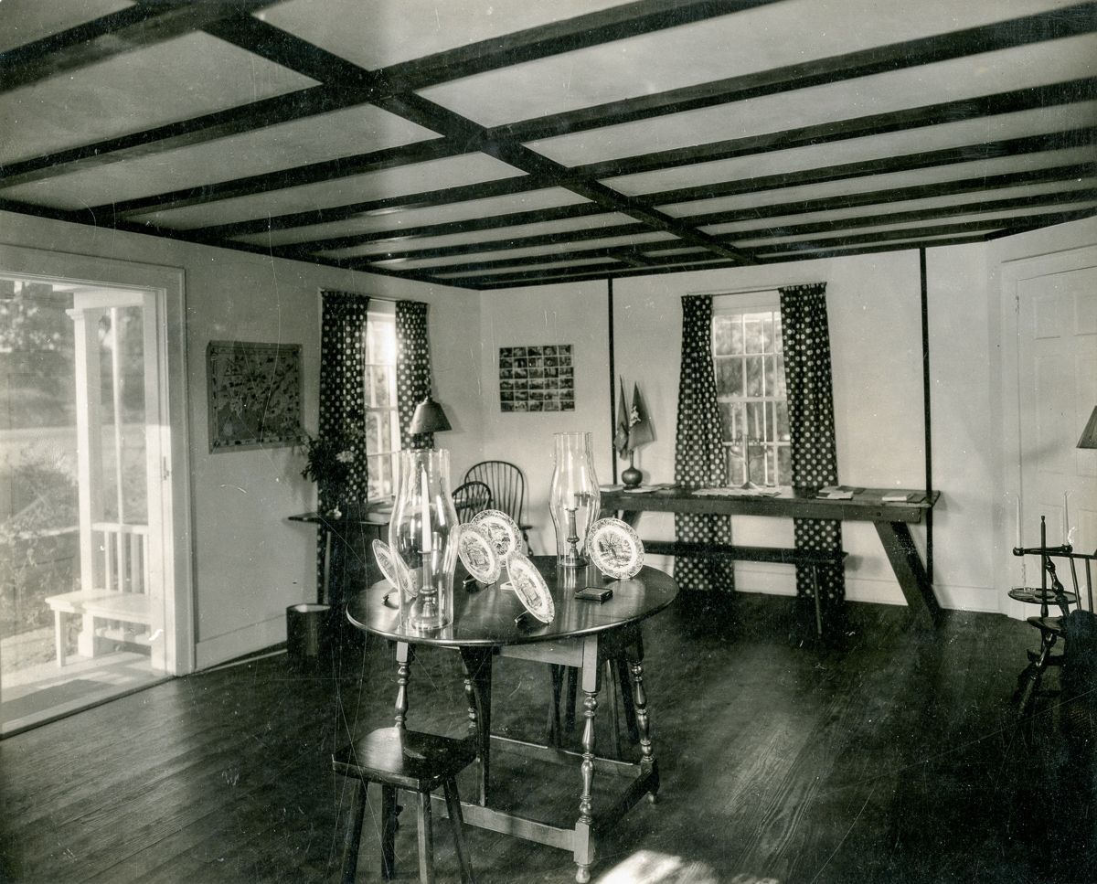 Interior of the information center for Connecticut's Tercentenary erected in June 1935 at the entrance to Connecticut/Greenwich (in Byram) on the Post Road.Collection