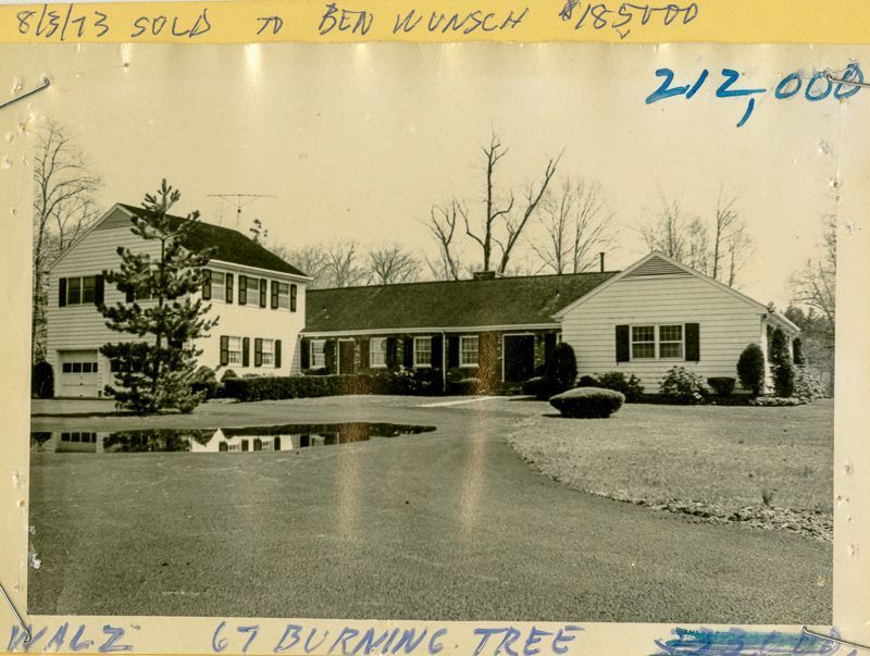 Ranch house built in 1963 with a two door garage viewed from its driveway.