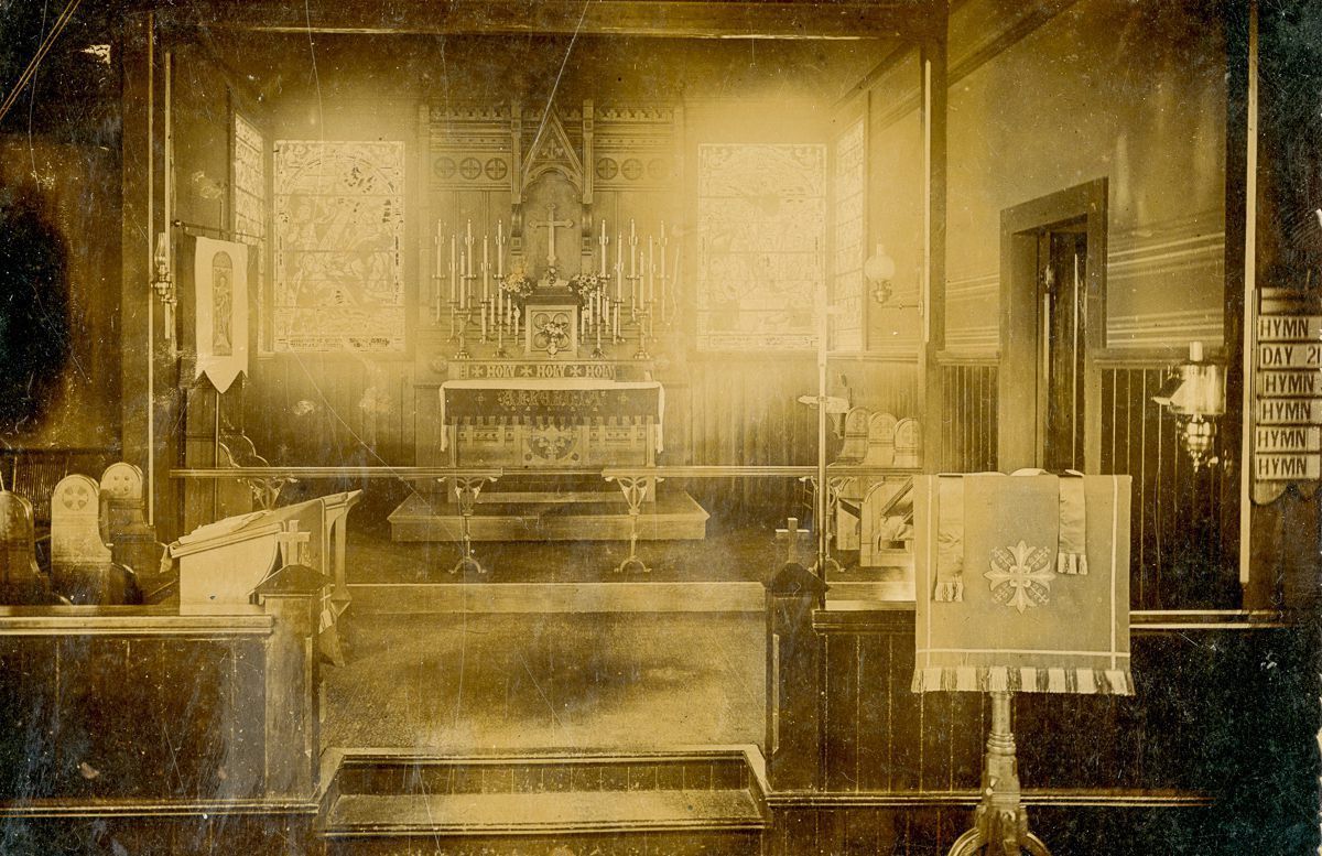 A view of the altar of St. Paul's Episcopal Church sometime shortly after its construction in 1876.Collection